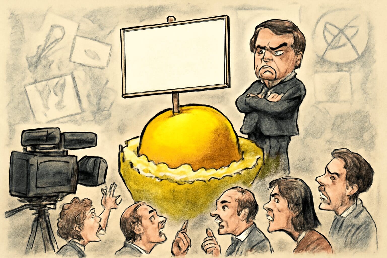 Era um cardápio variado: outdoor de pequi roído virava inquérito; cobrar virava caso de polícia; reportagem da Globo virou ameaça de fechamento. Tudo embalado no slogan repetir até a exaustão: “liberdade acima de tudo!”. Claro, liberdade deles — de agredir, ameaçar, espalhar fake news a rodo em lives caseiras direto da Alvorada. Já a liberdade dos outros, essa necessária de um bom cerco policial, um processo exemplar, ou no mínimo uma ameaça velada de cassação da concessão da maior rede de TV do país.