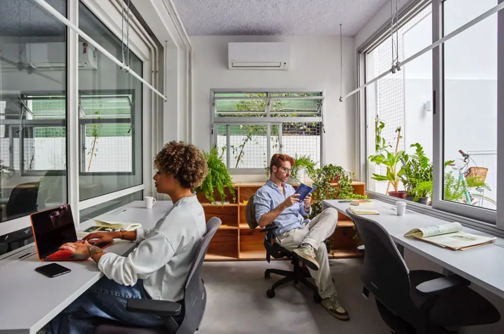Entre as facilidades que o ambiente oferece estão: planos flexíveis e customizáveis?; internet de alta velocidade?; pet friendly; salas com tratamento acústico; refeitório para um break; espaços para descompressão; livros para inspiração; terraço para relaxamento; espaço para eventos; estacionamento para sua bike; manutenção e limpeza inclusos. Tudo isso em uma localização privilegiada, uma rua tranquila e silenciosa em meio a movimentação do bairro de Santa Cecília. A arquitetura privilegia a entrada de luz a ventilação naturais.