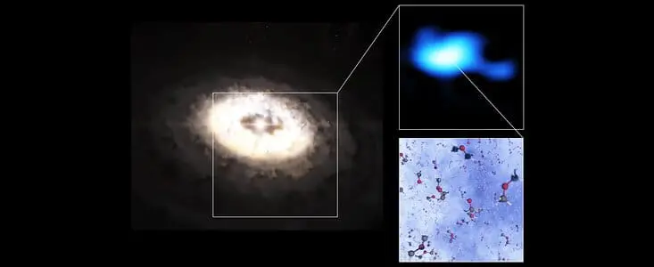 O éter dimetílico é uma molécula orgânica que se observa com frequência em nuvens de formação de estrelas, mas que nunca antes tinha sido descoberta num disco de formação planetária. As investigadoras fizeram também uma deteção experimental de metanoato de metilo, uma molécula complexa semelhante ao éter dimetílico e que é também um bloco constituinte de moléculas orgânicas maiores.