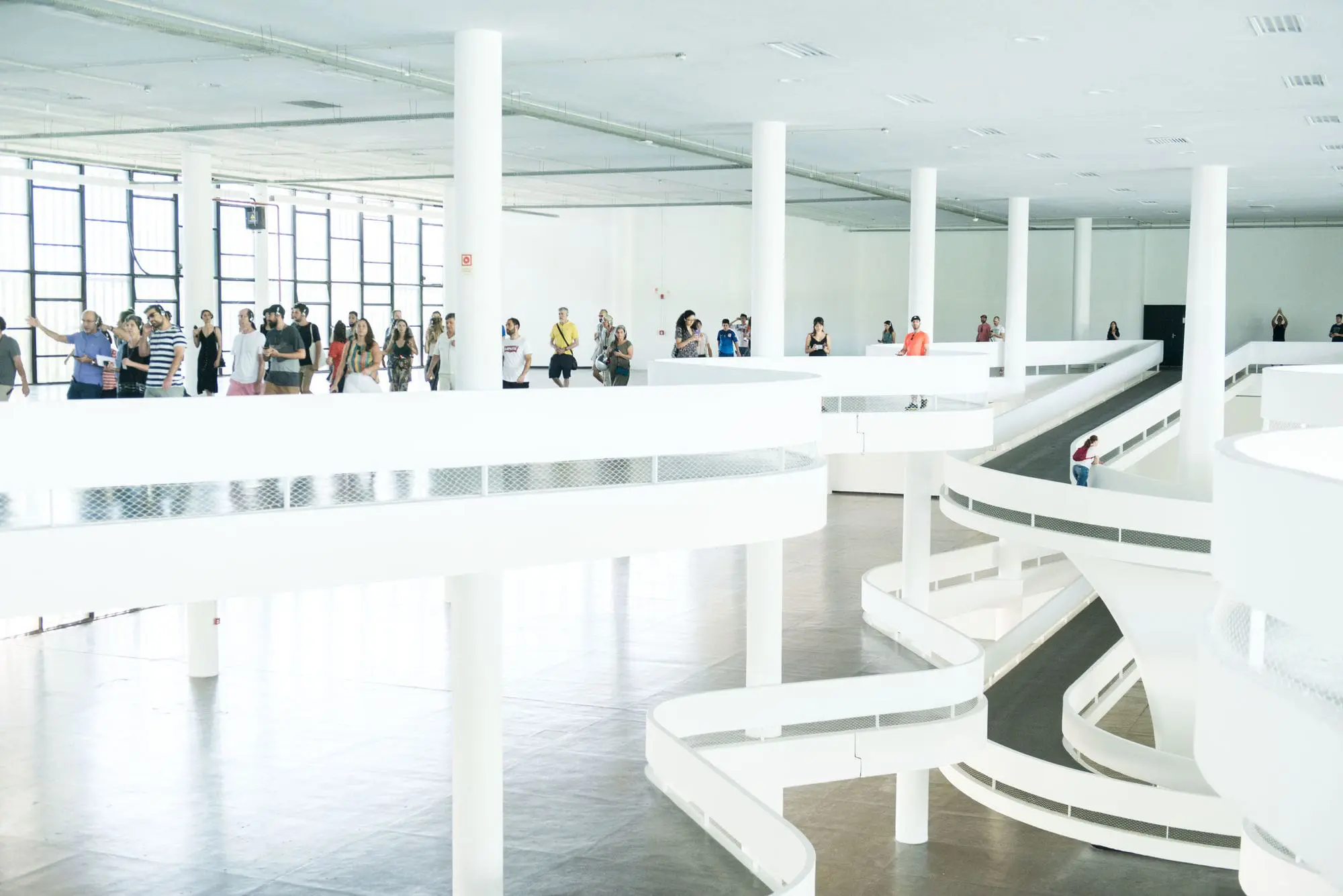 Percurso pelo Pavilhão da Bienal acompanhado da equipe da instituição sobre o projeto modernista do Pavilhão da Bienal e do Parque Ibirapuera. O trajeto inclui os três andares do Pavilhão, realçando aspectos do projeto e obras de Bienais de São Paulo que dialogam com a estrutura física e simbólica do edifício.