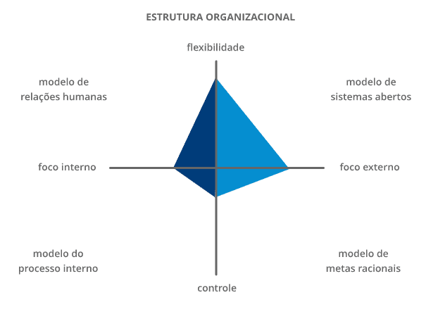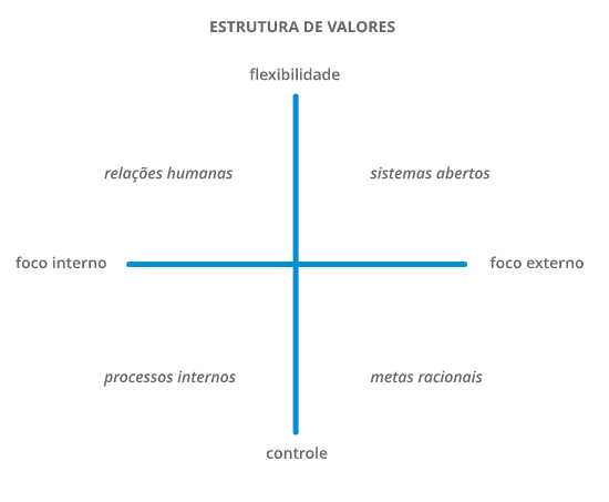 A busca da eficácia organizacional conduz à seguinte questão: o que focar para agregar valor? Os aspectos internos ou os aspectos externos da empresa? A estabilidade ou a flexibilidade? Vejamos a estrutura de valores a seguir: