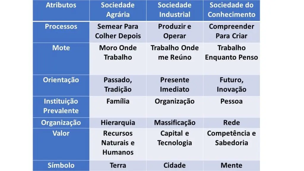 - Trabalhador do Conhecimento – Sociedade do Conhecimento: capaz de aprender; criativo; flexível diante da ambiguidade e da incerteza; preparado para compreender interdependências – visão global e pluralista; capaz de elaborar e recriar a realidade – analista simbólico; apto a conciliar visão estratégica com habilidade operativa; capaz de demonstrar vitalidade e perfil empreendedor.