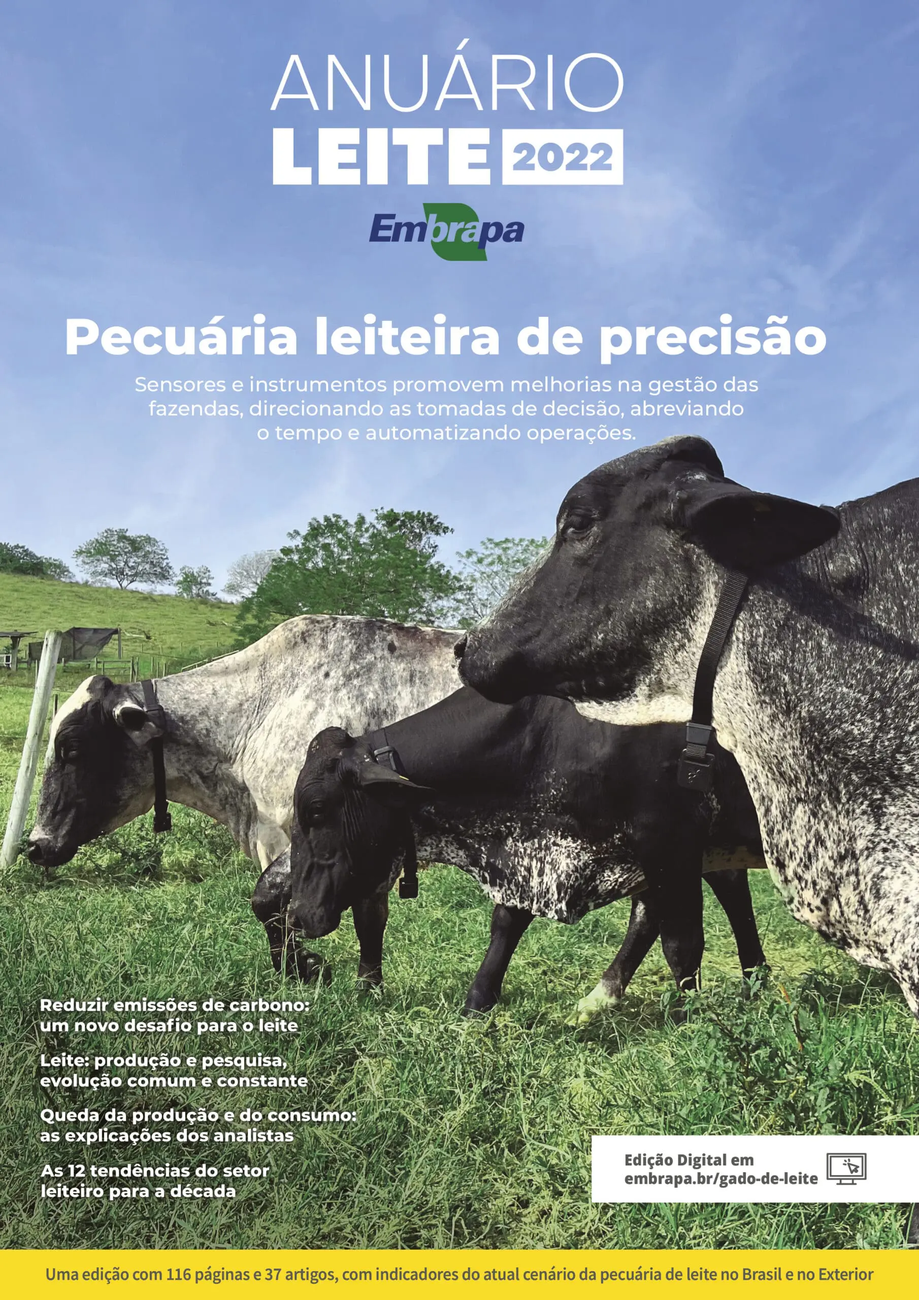 O Anuário Leite 2022, da Embrapa Gado de Leite, é uma completa publicação com 37 artigos, distribuídos em 116 páginas, com análise dos mais variados temas de interesse da cadeia do leite. A publicação apresenta análise do mercado brasileiro e global, indicadores de produção, preços e custos, leite nos estados, maiores fazendas produtores e maiores laticínios, oferta de leite UHT, tendências do leite para a década, leite no mundo (Cone Sul, China e Nova Zelândia), emissões de carbono, insumos (sêmen, produtos veterinários e alimentação animal), volumosos (novas cultivares de forrageiras para pastagens) e conteúdo sobre consumo (geração Z e lácteos preferidos).