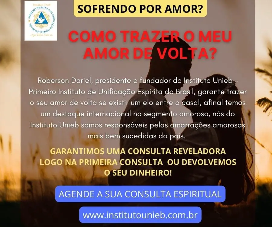 Primeiro Instituto de Unificação Espírita do Brasil, garante trazer o amor de volta se existir um elo entre o casal, afinal temos um destaque internacional no segmento amoroso, nós do Instituto Unieb  somos responsáveis pelas amarrações amorosas mais bem sucedidas do país.