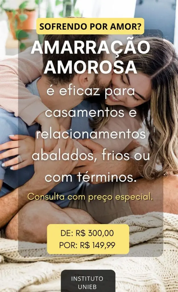 Temos um destaque internacional no segmento amoroso, nós do Instituto Unieb  somos responsáveis pelas amarrações amorosas mais bem sucedidas do país. Acreditamos que esse sucesso vem da vasta experiência e permanência no mercado, o Instituto Unieb já realizou mais de 100 mil atendimentos ao longos desses anos, sendo que 69 mil foram voltados para amarrações amorosas, afinal disso Instituto Unieb tira de letra, com aproveitamento de mais de 90% O Instituto Unieb tem o maior índice de trabalhos concluídos com excelência, podemos afirmar que muitas famílias foram reconstituídas com a nossa ajuda.