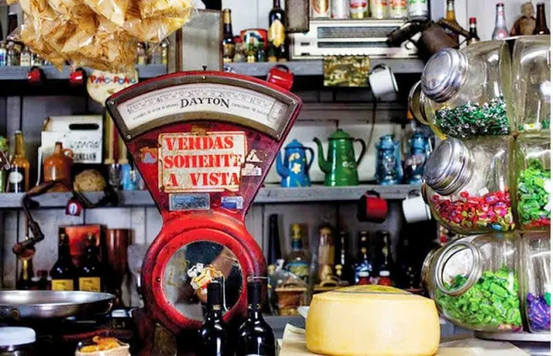 O balcão de madeira já estava lá há tantos anos que, de tanto debruçarem e apoiarem as mãos, parecia ter recebido uma aplicação de betume. Nele havia uma estufa com salgados, torresmos, ovos cozidos azuis e rosas e um tabuleiro de frissura. Do outro lado, uma antiga balança de ponteiro vermelha da Filizola e um baleiro giratório de três andares todo de vidro e com suas tampas de alumínio. Enquanto eu o girava, ouvia aquele rangido agudo e via a grande quantidade de balas, pirulitos e outros doces que já não via mais desde meados dos anos 90: pirulitos do Zorro, de guarda-chuva, balas Chita, Dadinhos, marias-moles em casquinhas de sorvete (que sempre estavam murchas), suspiros coloridos, balas Soft, pirocópteros, mini-ioiôs, dentaduras de vampiro, apitos, cornetinhas, anéis de plástico e línguas-de-sogra.