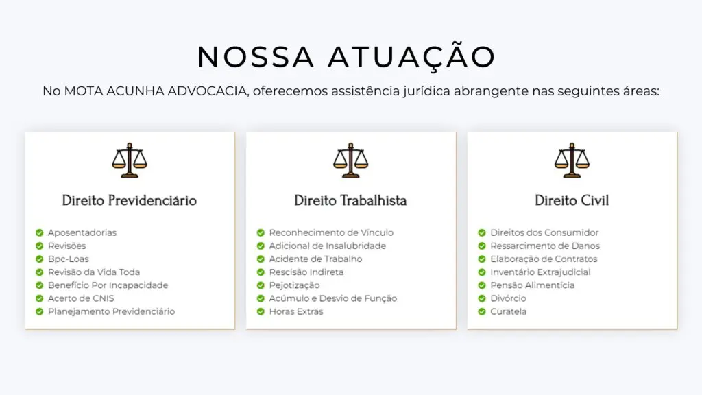Ao escolher a Mota Acunha Advocacia, você conta não apenas com advogados qualificados, mas também com profissionais comprometidos em buscar as melhores soluções jurídicas para suas necessidades. Agende uma consulta e confie em nossa experiência para guiar você pelos caminhos da justiça.
