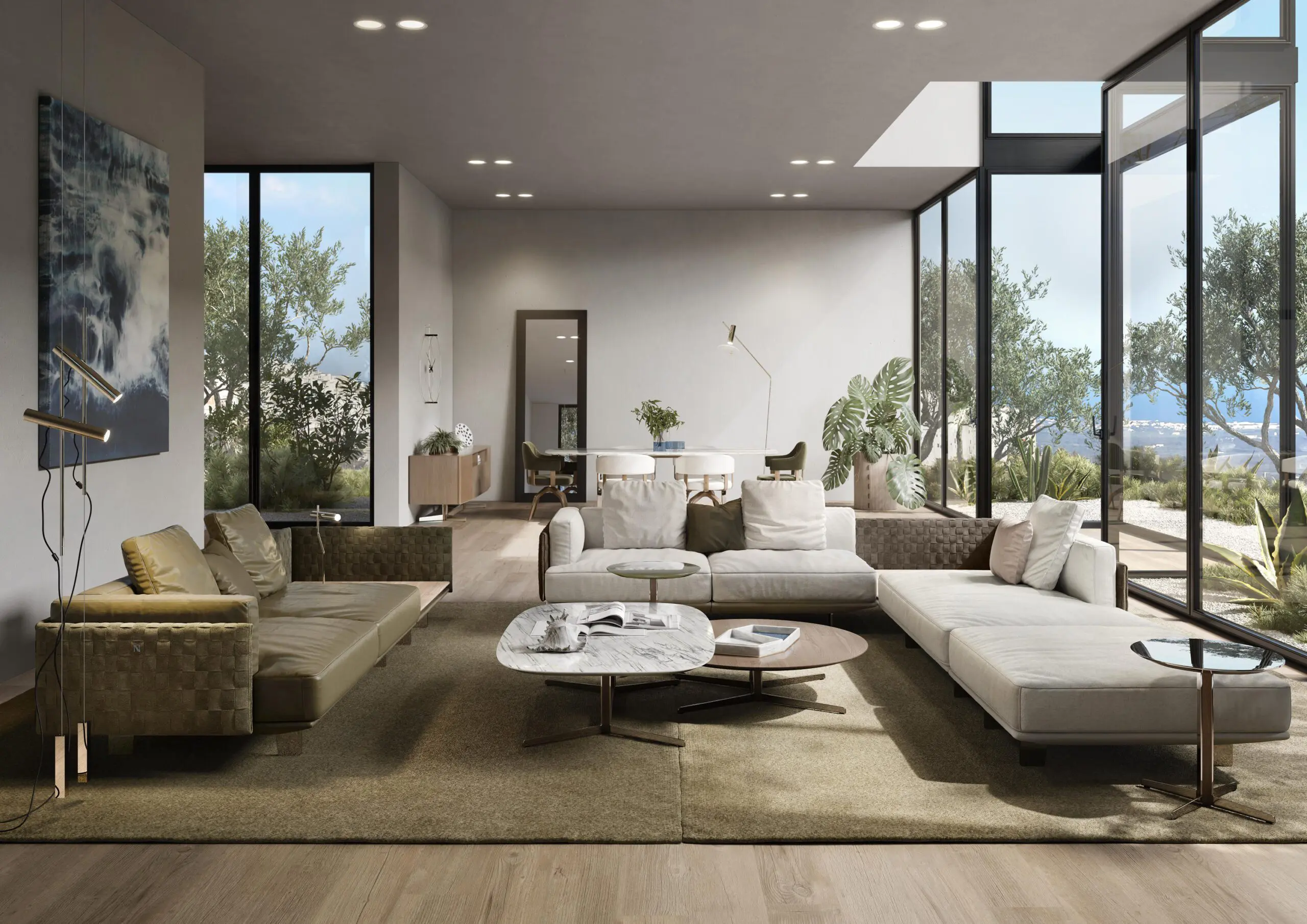 Campus é o sofá modular perfeito para um espaço de grandes dimensões, com um ambiente descontraído, relaxante. E graças a vasta gama de módulos, oferece possibilidade de criação de ilhas de conforto configuradas de acordo com cada necessidade. Uma estrutura de couro trançado delimita o espaço do assento e do encosto com um detalhe que remete a elegância sussurrada: grandes almofadas de assento e encosto são colocadas na estrutura para convidar ao descanso e ao convívio.