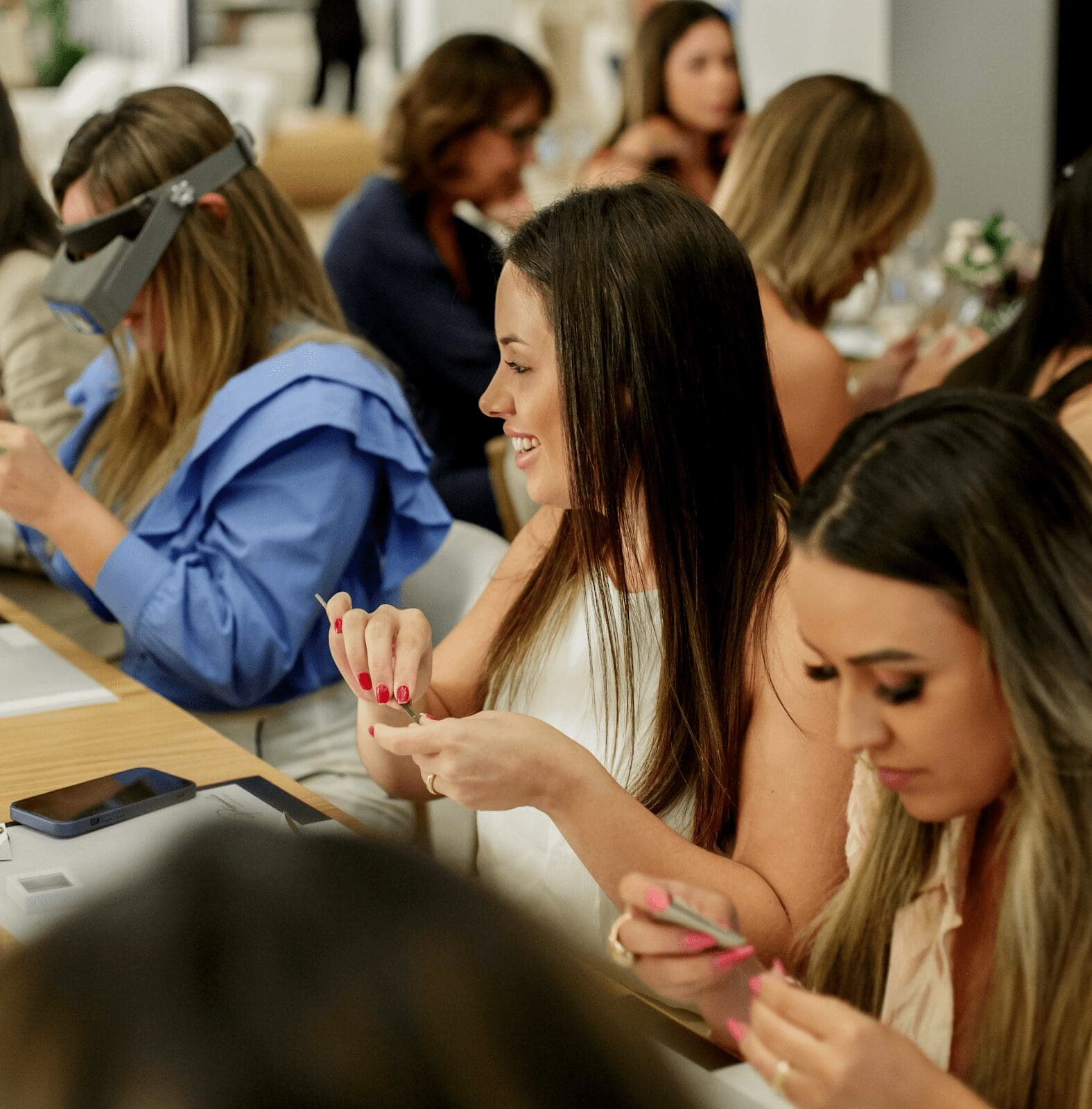 Na última quinta-feira, 13 de março, a ContTi Home Design, em parceria com a Personnalité Joias, recebeu cerca de 30 arquitetas e designers de interiores em uma vivência especial. No mês dedicado às mulheres, a oficina de joalheria trouxe um convite para olhar além do cotidiano profissional e mergulhar em um processo manual e simbólico: a criação de pingentes em pedras naturais, feitos pelas profissionais.