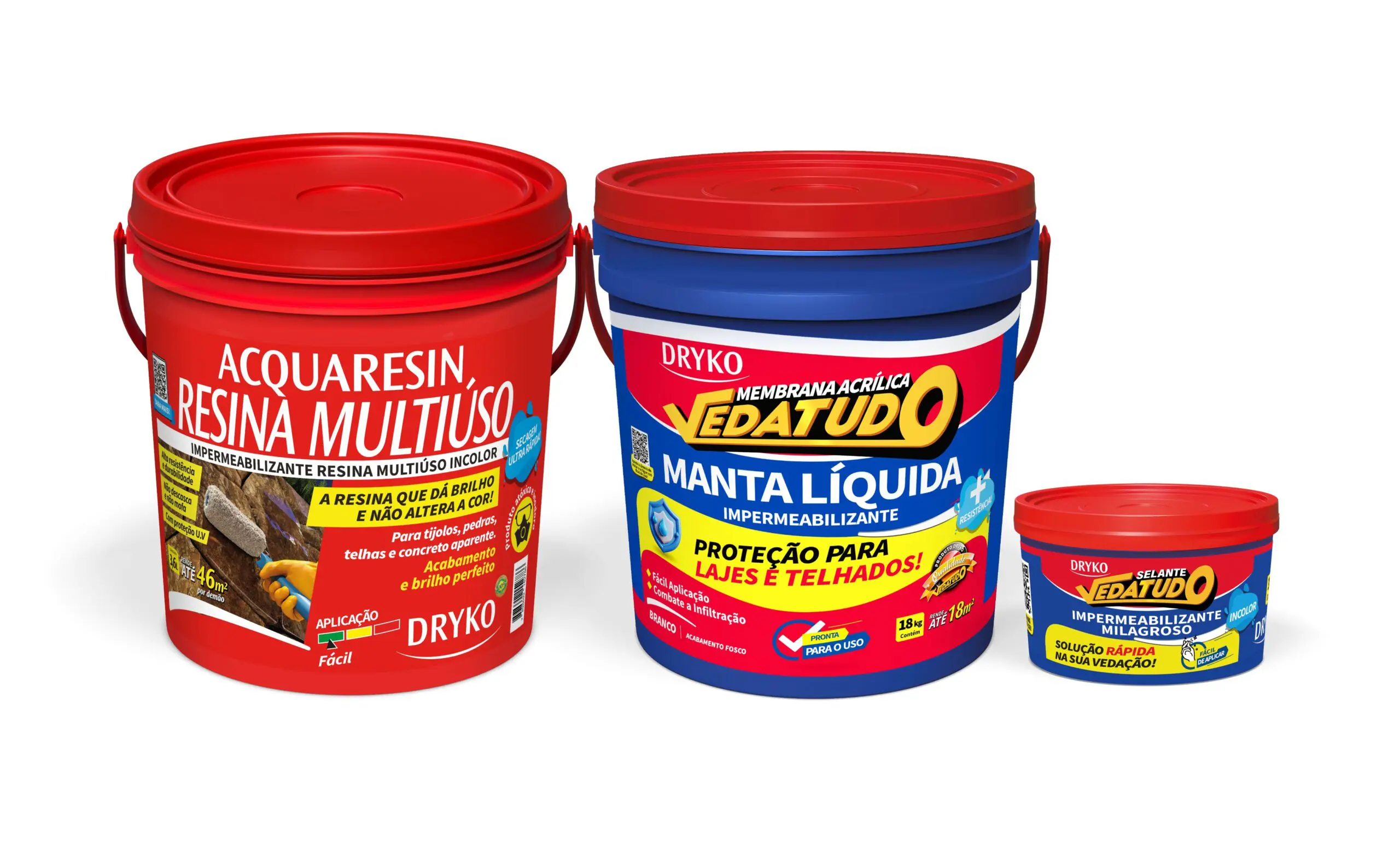 Lançamento da DRYKO em 2025, o DRYKO Acquaresin Resina Multiuso prolonga a vida dos materiais presentes na edificação. Sua utilização descomplicada protege áreas internas e externas | Foto: divulgação DRYKO |