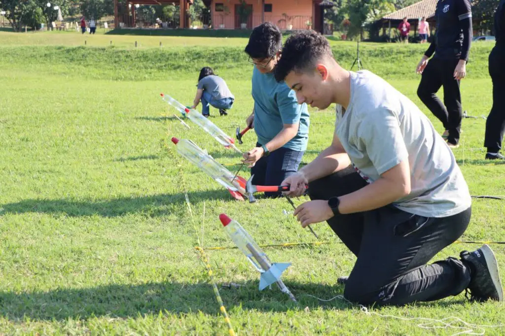 Já o nível 3 é para os matriculados entre o 6º e o 9º, que precisam elaborar e lançar foguetes de garrafa pet movidos com água e ar comprimido. No nível 4, alunos do ensino médio lançam foguetes movidos com vinagre e bicarbonato de sódio. Já no nível 5, alunos do ensino médio ou superior lançam foguetes de propulsão sólida.