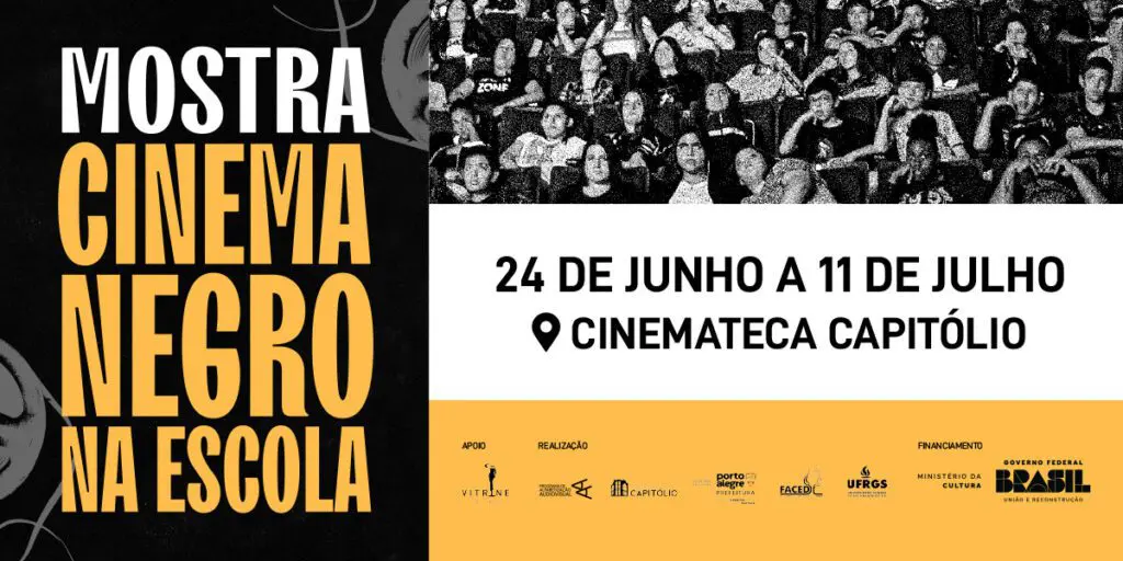 Evento único do gênero no país, a 1ª Mostra de Cinema Negro na Escola acontecerá de 24 de junho a 11 de julho na Cinemateca Capitólio, em Porto Alegre. Com sessões gratuitas, a iniciativa irá exibir filmes com temática afro-brasileira para estudantes e professores da rede pública de ensino da capital gaúcha e região metropolitana. Escolas interessadas poderão fazer o pré-agendamento a partir do dia 2 de junho pela internet por meio do seguinte link: https://forms.gle/TGdwNphDi1SAxvHr7