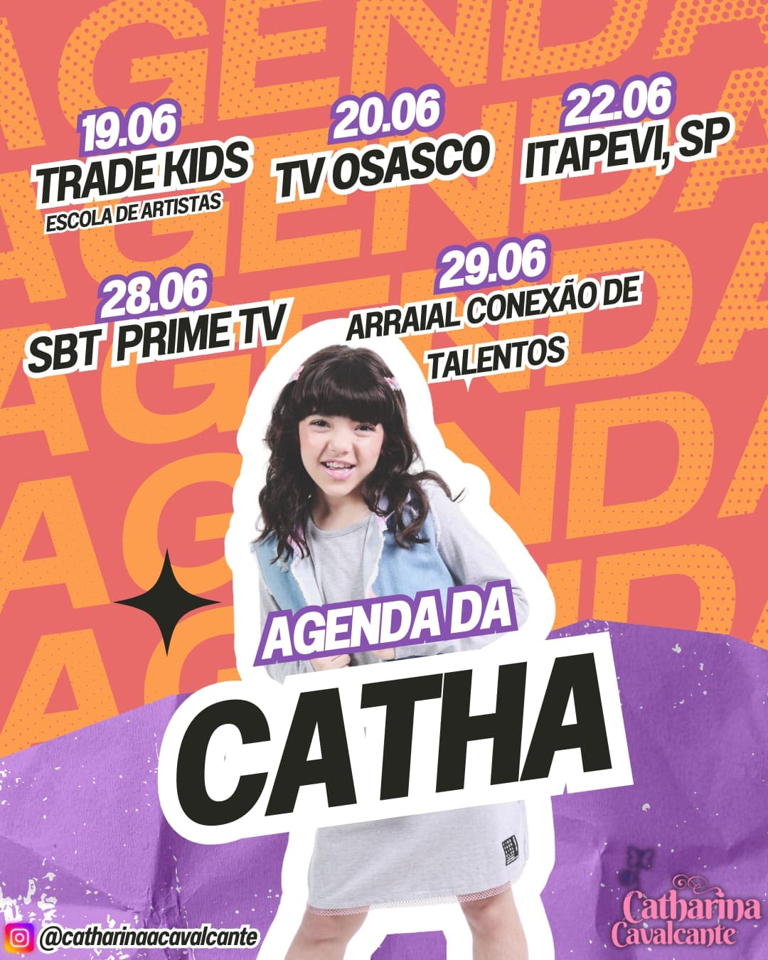 Ela vale por dez — em carisma, em presença, em talento e em alegria contagiante! A atriz, modelo e apresentadora mirim Catharina Cavalcante acaba de anunciar sua agenda oficial de eventos e presenças VIP para o restante do mês de junho, e o público já pode se preparar: vem aí uma temporada repleta de momentos especiais, encontros inesquecíveis e muita luz por onde ela passar.