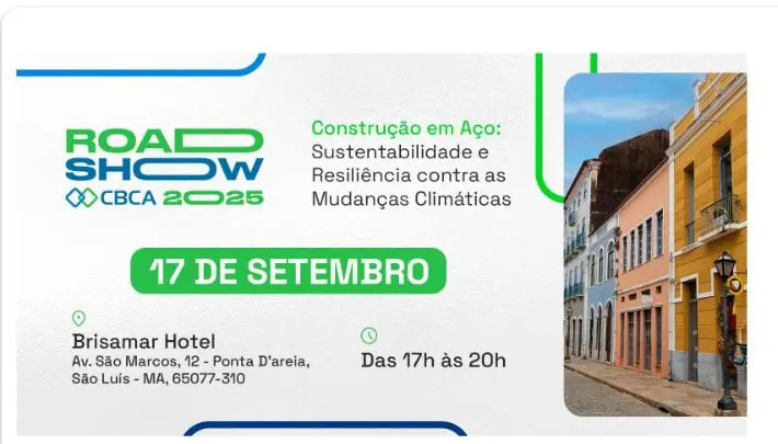 Após mais de 210 edições de sucesso realizadas em praticamente todas as capitais brasileiras, e depois de já ter passado em 2025 por São Paulo e Porto Alegre, o Centro Brasileiro da Construção em Aço (CBCA) segue agora com o seu projeto de RoadShow para São Luís, apresentando o tema “Construção em Aço: Sustentabilidade e Resiliência contra as Mudanças Climáticas”. O evento reunirá experts no assunto para debater como as mudanças climáticas estão desafiando cada vez mais as cidades, as formas como as infraestruturas urbanas são pensadas e de forma mais ampla as configurações das habitações. Nesse cenário, a construção em aço será apresentada como protagonista e aliada estratégica, uma vez que oferece rapidez, precisão e segurança aos projetos, além de ser resiliente e eficiente no uso de recursos naturais. Os especialistas convidados debaterão o papel da construção em aço na reconstrução pós-tragédias, sua presença no planejamento das cidades inteligentes e as políticas públicas que podem impulsionar uma infraestrutura mais preparada para o futuro.
