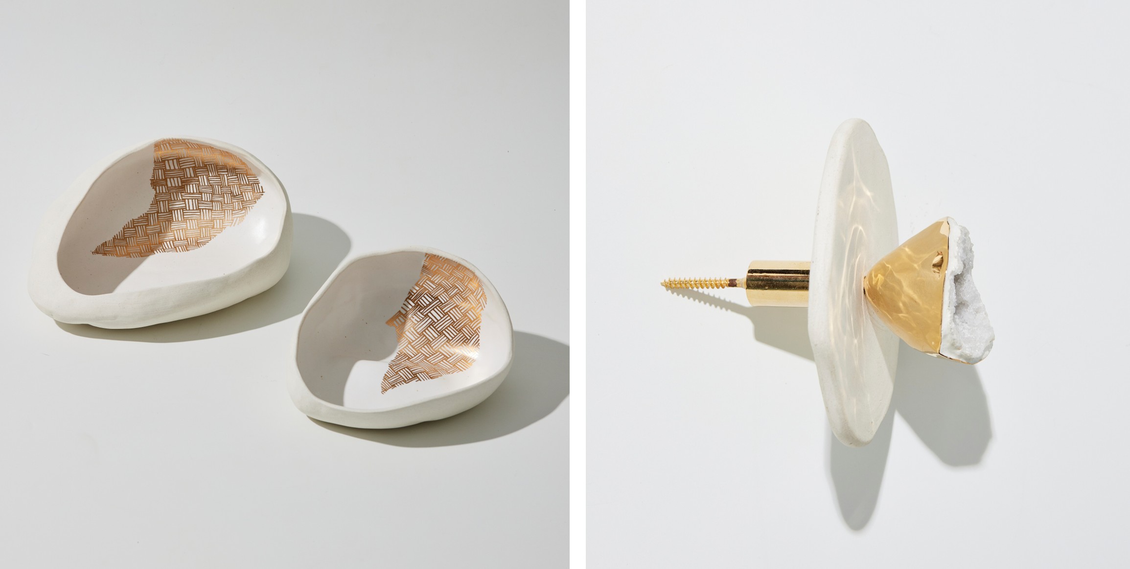 | Joalheira e arquiteta, Nao Yuasa une a lógica da arquitetura à pesquisa de materiais. Pedras brutas, sedas artesanais, cerâmicas e metais diversos, tudo é matéria na criação. Assim, nascem objetos simbólicos, que ela chama carinhosamente de “joias para casa”. Entre os exemplos estão os bowls da coleção Buril, que partem da mistura de grafismos indígenas brasileiros, que Nao Yuasa redescobre na semelhança com estampas japonesas. Bowls em porcelana branca recebem decalques em ouro e preto como nanquim, estampando sobre a matéria subjetividades e significados. E os penduradores esculturais, em que cada peça consiste em uma pedra envolta em latão banhado a ouro. Mais informações: https://loja.naoyuasa.com.br/ Studio SALP |