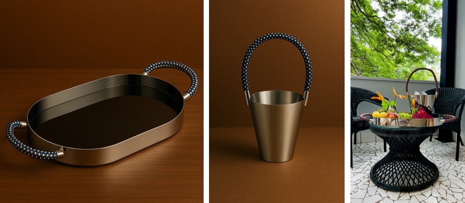 ![]() Bandeja e balde de gelo para jardins, piscinas e varandas / Divulgação St. James e ABUP Entre os lançamentos da St. James estão os itens da coleção Rapunzel Outdoor, com foco nas áreas externas, criada pelo designer Matteo Cibic. Apresentada internacionalmente, durante a última edição do Salone del Mobile.Milano, as peças combinam aço inox com cordas náuticas, materiais funcionais e modernos. O resultado é uma seleção versátil, composta por bandejas, baldes de gelo e champanheiras com apelo visual vibrante e perfeitos para ambientes como jardins, piscinas e varandas. Mais informações: www.saintjames.com.br Strauss |