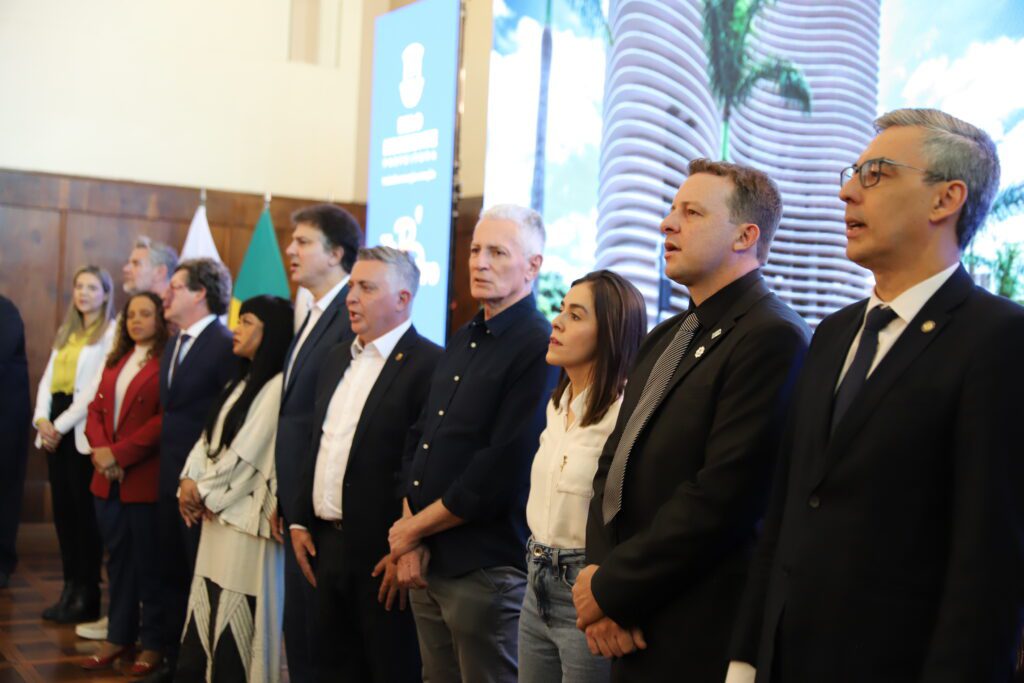 O ministro da Educação, Camilo Santana, o prefeito de Belo Horizonte, Álvaro Damião, e o reitor do IFMG, Rafael Bastos, formalizaram nesta quinta-feira, 28, ações relacionadas à implantação das novas unidades do instituto no Estado. Em ato realizado no Salão Nobre da Prefeitura, Álvaro Damião assinou o termo de compromisso da Operação Urbana Simplificada (OUS) que permitirá a instalação do campus da instituição na região do Barreiro.