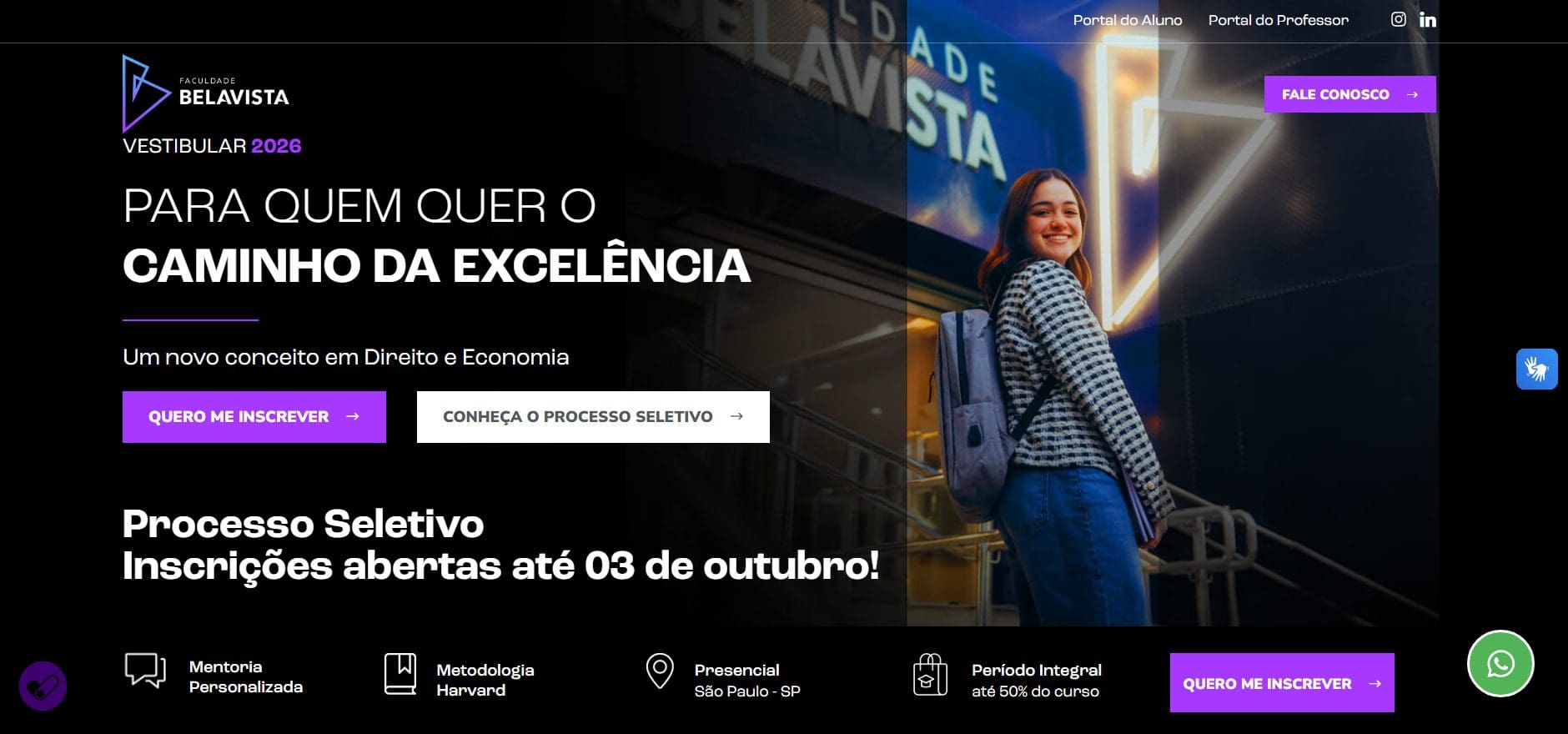 Serviço – Processo Seletivo 2026 dos cursos de Direito e Economia da Faculdade Belavista
