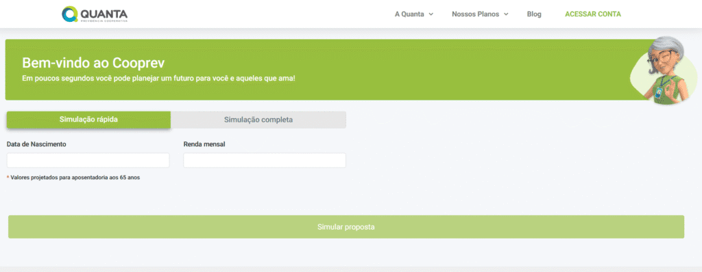 Acesse agora: www.quantaprevidencia.com.br/home/cooprev/simulador e simule gratuitamente e descubra o plano ideal para o seu perfil.