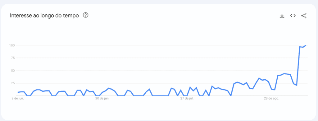 Esse movimento é esperado pela proximidade da data. No dia 3 de setembro, por exemplo, a pesquisa pelo termo atingiu seu pico máximo (100 pontos).