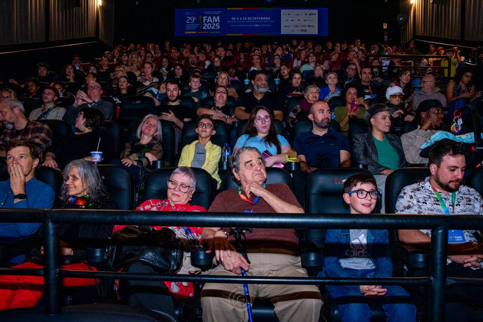 Um dos 10 festivais de cinema mais antigos do Brasil e o maior de Santa Catarina, realizado pela Associação Cultural Panvision, o 29º Festival Internacional de Cinema Florianópolis Audiovisual Mercosul – FAM 2025, iniciou nesta quinta-feira (5) com sala lotada no Cine Show do Beiramar Shopping, numa cerimônia acolhedora para o público neurodivergente. As palmas foram substituídas por acenos de mãos e todo o evento teve a presença de uma intérprete de Libras.
