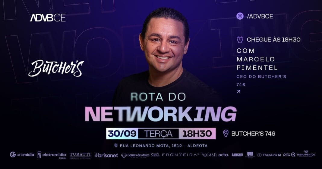 A próxima edição da Rota do Networking, iniciativa da Associação dos Dirigentes de Vendas e Marketing do Brasil no Ceará (ADVB-CE), terá como protagonista o empresário Marcelo Pimentel, sócio do Butcher’s e do Pim Food. O evento será realizado no dia 30, no restaurante Butcher’s, em Fortaleza, reunindo empreendedores e líderes interessados em discutir os desafios de empreender na gastronomia.