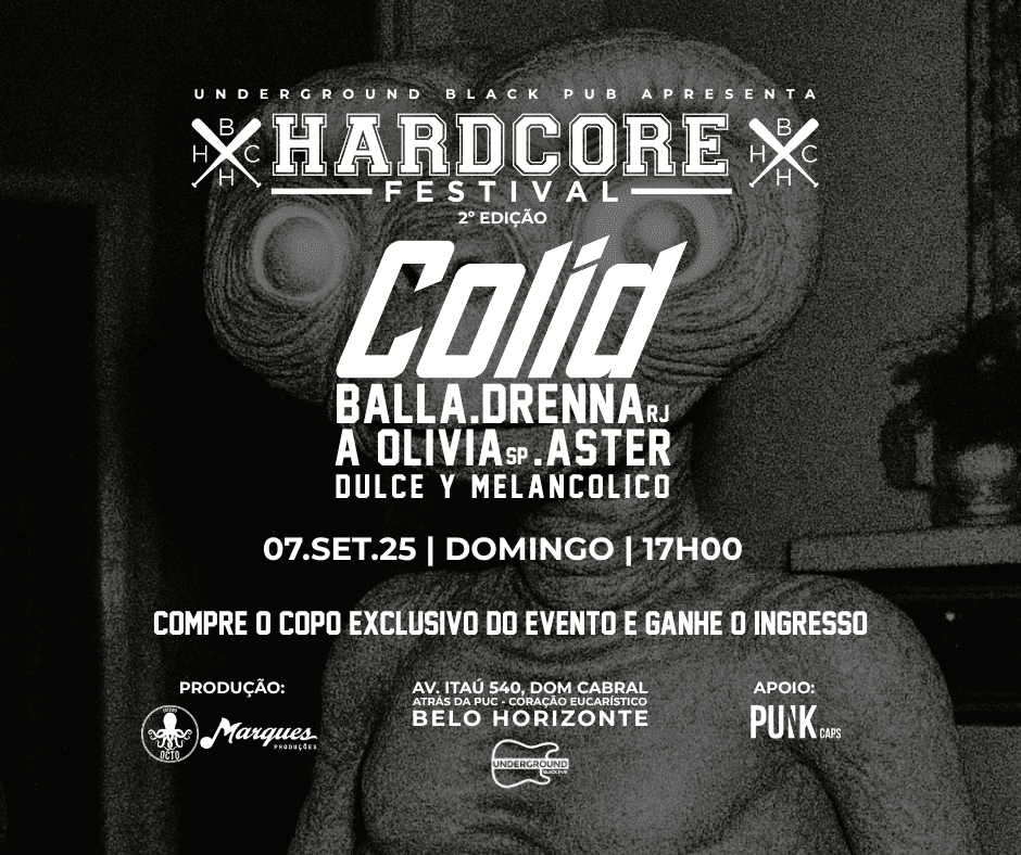 O HARDCORE Festival está de volta a Belo Horizonte no dia 7 de setembro de 2025, a partir das 17h, no Underground Black Pub. O evento reúne o melhor do rock alternativo e hardcore nacional, com seis bandas autorais em um line-up intenso e diversificado.