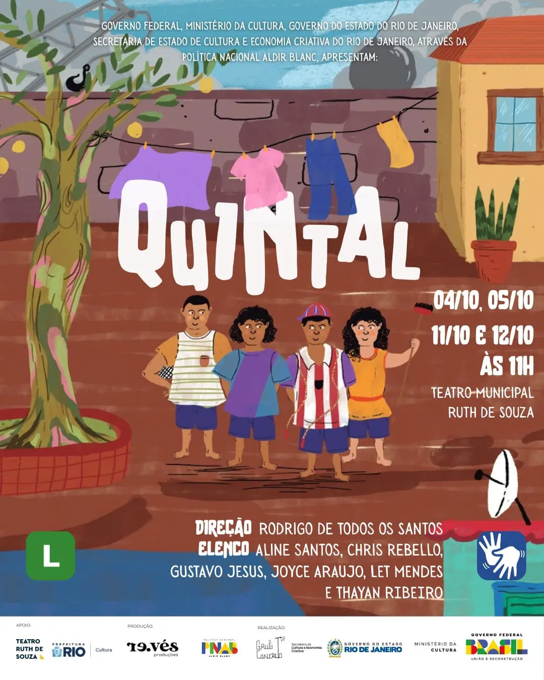 “Quintal” é um espetáculo infanto-juvenil, autoral e inédito que tem a premissa de resgatar a importância da brincadeira na formação da criança periférica e de preservar a memória de bairros marginalizados diante da transformação do território causada pela especulação imobiliária.