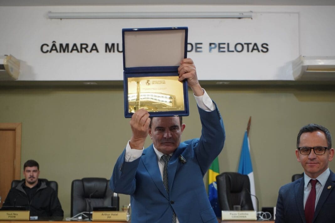 No plenário da Câmara de Pelotas, o presidente da Rede São João recebeu o título de Cidadão Pelotense. A homenagem é um reconhecimento aos serviços e ações prestadas em nome da solidariedade, desenvolvimento e transformação social que impactam no município.