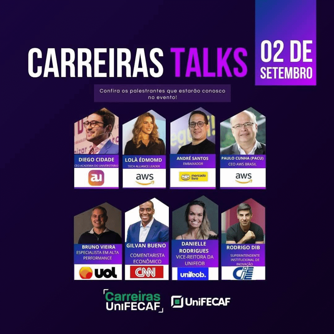 “Hoje, muitos alunos desconhecem as oportunidades que estão ao seu alcance — nas áreas de tecnologia, saúde, gestão e diversas outras. O carreiras talkss nasce justamente para apresentar, por meio de quem já trilhou essa jornada, as inúmeras possibilidades profissionais e fomentar o networking de forma cada vez mais intensa”, afirma Diego Braga, head de carreiras da UniFECAF.