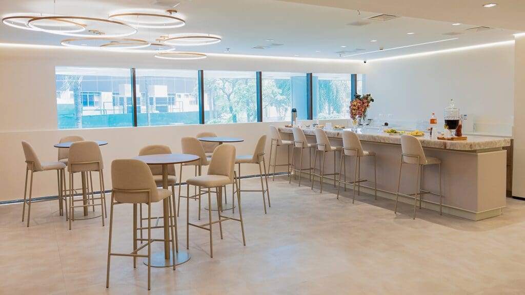 Idealizado pelos engenheiros Thiago Calçada e Nickolas Greessier, em parceria com a arquiteta Débora Damiano, do escritório 2 Arq, o projeto buscou traduzir a identidade da ABGREF em ambientes modernos, acolhedores e tecnicamente adequados às exigências sanitárias. A concepção final do mobiliário contou com o olhar criterioso do arquiteto e consultor Sandro Moura, responsável por adaptar o projeto às soluções oferecidas pela Celmar Rio, respeitando a linguagem da marca e os padrões da arquitetura clínica contemporânea.