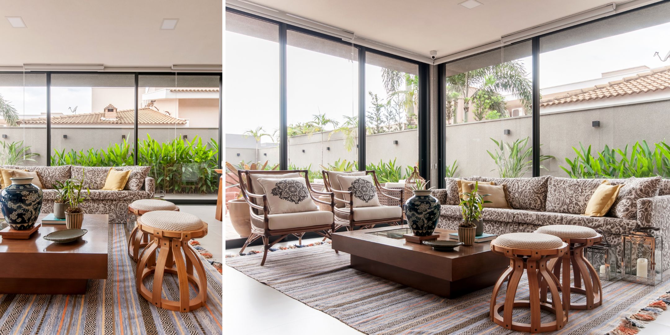No living desta residência, as arquitetas Vanessa Paivas e Claudia Passarini selecionaram duas peças idênticas para compor o meio da sala com sua generosa área retangular| Projeto Paiva e Passarini Arquitetura e Design | Foto: Carolina Mossin