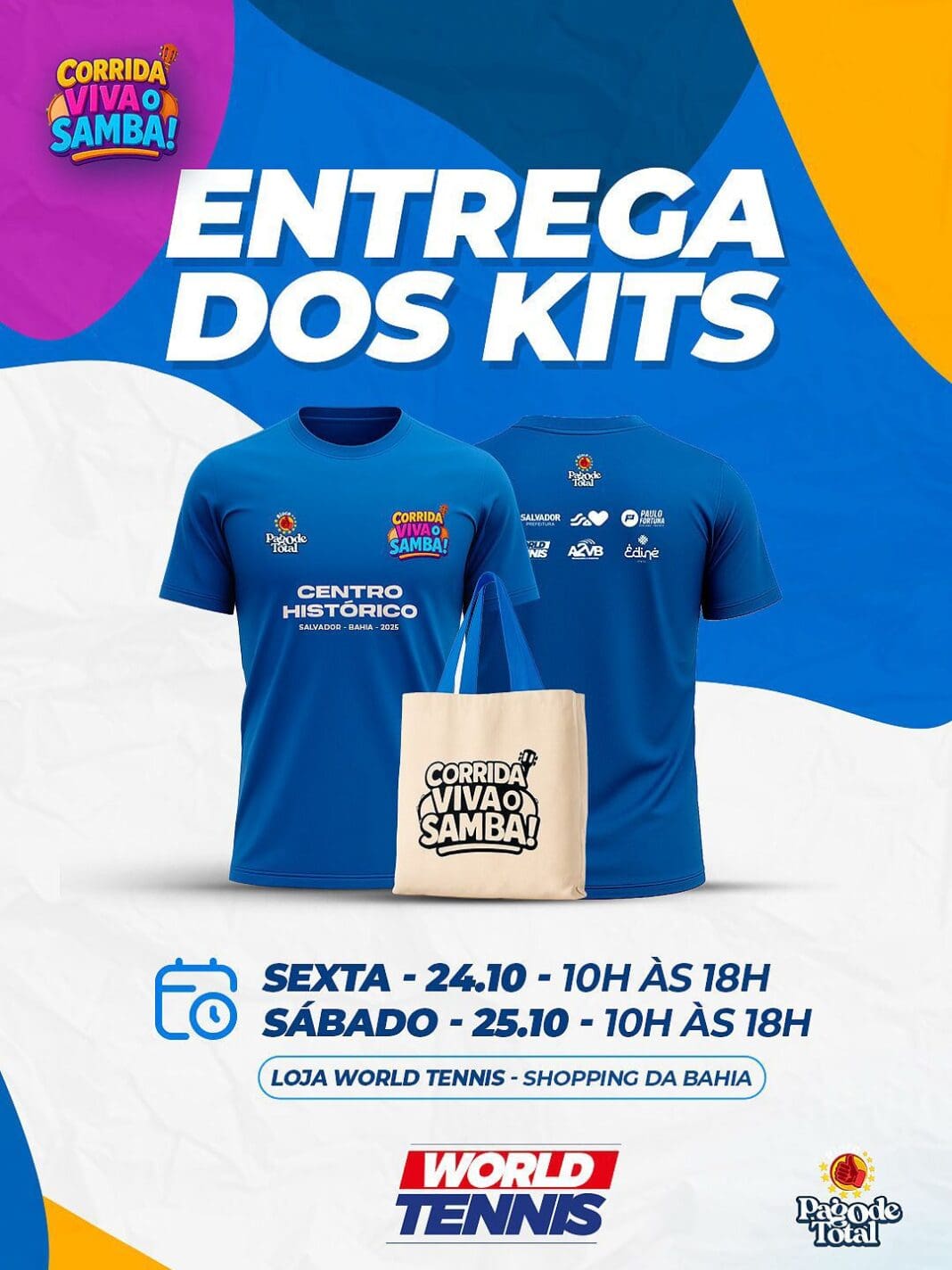 Os preparativos para a primeira edição da Corrida Viva o Samba já estão a todo vapor! Os participantes poderão retirar seus kits nesta sexta (24) e sábado (25), das 10h às 18h, na Loja World Tênis, localizada no Shopping da Bahia.