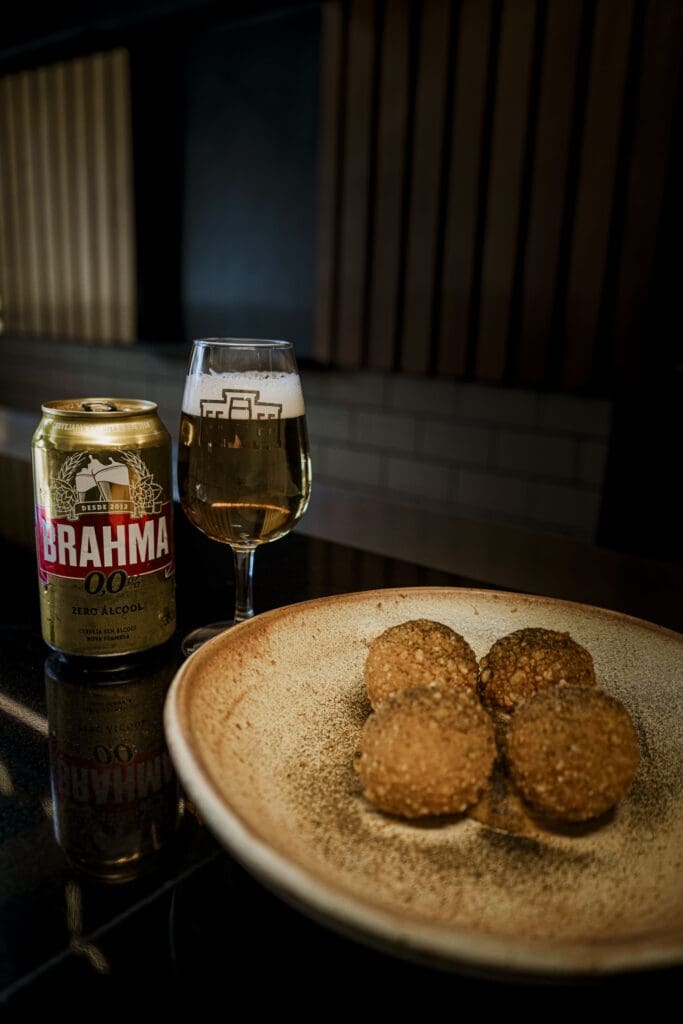 Bolinho de Macaxeira Pubada harmonizado com Brahma 0,0%