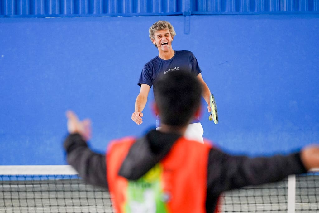 Esta sexta-feira (24) foi um dia especial para os 400 educandos do Instituto Guga Kuerten. O tradicional Encontrão, que chega à 20ª edição, transformou a sede da Astel, em Florianópolis, em um grande palco de celebração, esporte e alegria. O ídolo Gustavo Kuerten marcou presença e fez a festa junto com as crianças, participando das atividades, das brincadeiras e compartilhando sorrisos que vão ficar na memória de todos. Entre abraços, risadas e partidas animadas, o evento reforçou o verdadeiro propósito do Instituto: inspirar, acolher e celebrar a força do esporte na formação de vidas.