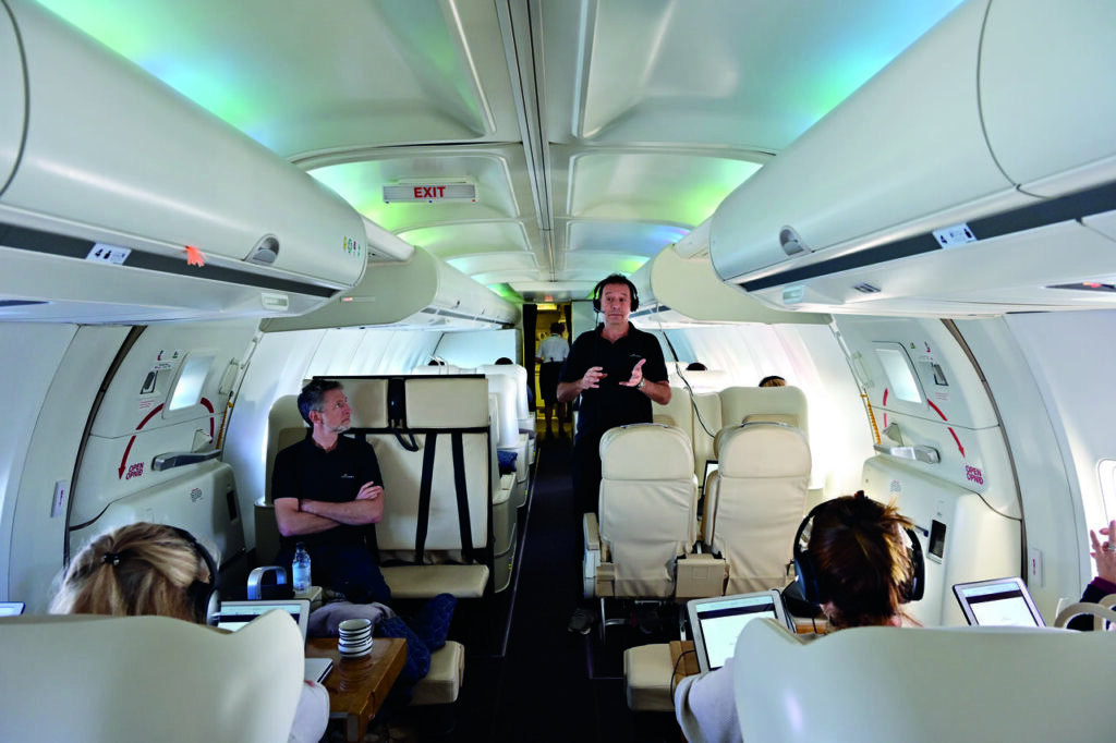 A bordo do jato que foi configurado internamente para expedições, conforto é a palavra-chave, com um interior sofisticado, 46 assentos de classe executiva reclináveis a 180° e tela privativa. Os viajantes acessam um tablet individual já preparado com conteúdo relativo ao roteiro, além de um fone antirruído para uso durante os voos.