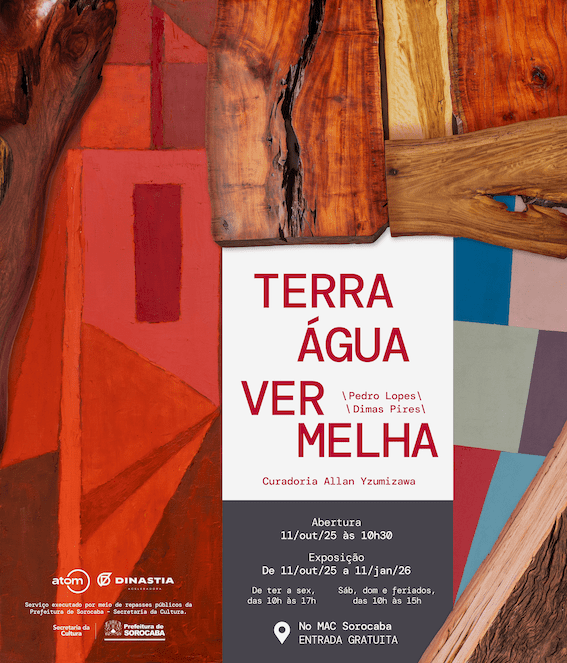 O projeto nasce do encontro entre pintura e escultura, arte e design, entre o gesto de decompor a paisagem em cor e o de recompor a natureza em forma. Pedro Lopes apresenta 18 pinturas em grande formato que partem da observação da região da Água Vermelha para construir uma síntese cromática e abstrata do ambiente sorocabano. Já Dimas Pires traz nove esculturas monumentais em madeira reaproveitada — troncos e raízes recolhidos de árvores caídas —, transformando resíduos naturais em novas presenças.
