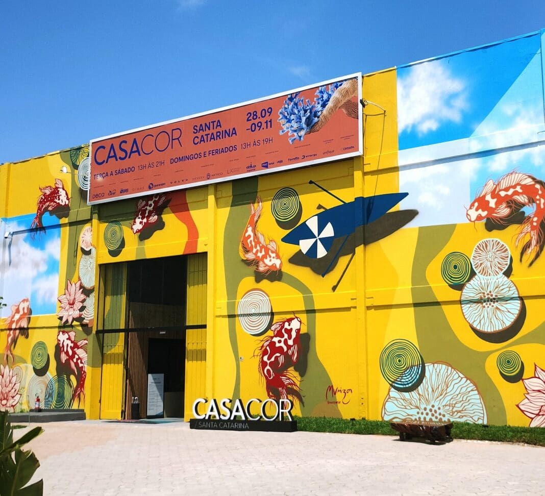 Quem chega à CASACOR SC | Florianópolis 2025 logo é surpreendido por uma pintura monumental que se destaca na fachada do ex-parque gráfico da NSC, em Capoeiras. Com 20 metros de largura por 9 de altura, o mural “As Carpas” é a nova criação do artista argentino Marcelo Urizar – que tem o nome artístico de Murizarte, e que há mais de uma década deixa sua marca em diferentes edições da mostra.