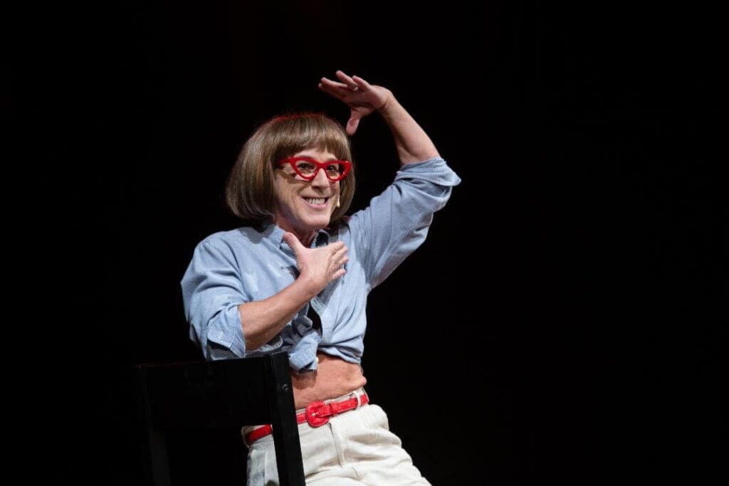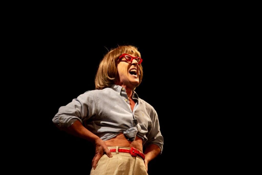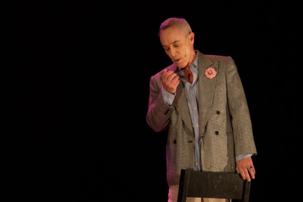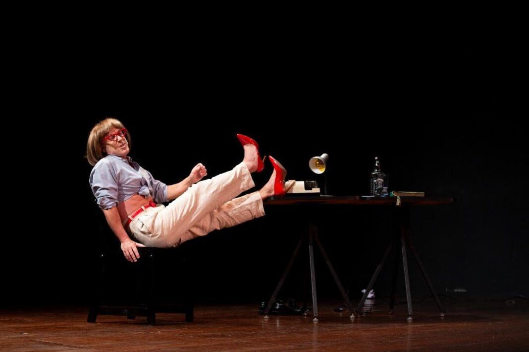 Em cena, Roberto é porta voz de Caio nos textos mais pessoais, falando em primeira pessoa sem qualquer tentativa de reproduzir as características físicas e vocais de Caio. Uma outra voz abarca dois heterônimos criados por Caio: as colunistas Nadja de Lemos e Terezinha O’Connor, figuras femininas (dentro de uma estética “camp”, é claro), que fazem uma crônica dos tipos humanos e comportamentos da fauna urbana da São Paulo (ou de qualquer megalópole) dos anos 80, revelando uma percepção aguda a apontar um dedo (de longa unha vermelho-ciclâmen) para as idiossincrasias da sociedade alternativa da época.