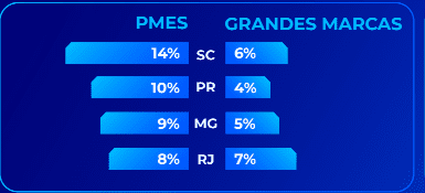 O Sul destaca-se como o local em que as pequenas e médias empresas (PMEs) têm maior presença (22%), sendo maior que as grandes marcas (12%), além de ser a segunda região com o maior volume de envio de pacotes por pequenos e médios negócios. Além disso, o Rio Grande do Sul foi o terceiro estado que mais cresceu (162%) no 1º semestre deste ano.