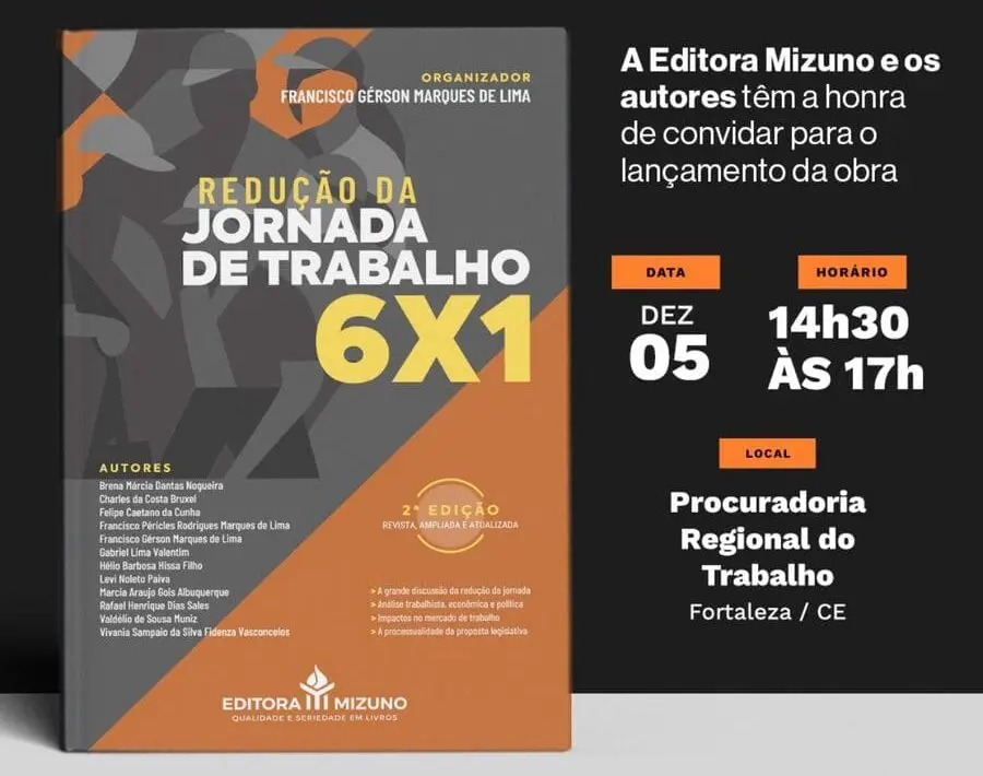 A discussão sobre a redução da jornada de trabalho volta à pauta com o lançamento do livro “Redução da Jornada de Trabalho 6×1”, publicado pelo Grupo de Estudos em Direito do Trabalho (GRUPE), da Universidade Federal do Ceará (UFC). A obra reúne argumentos jurídicos, sociais e econômicos que defendem a revisão da atual escala adotada atualmente em boa parte do comércio e dos serviços no país.
