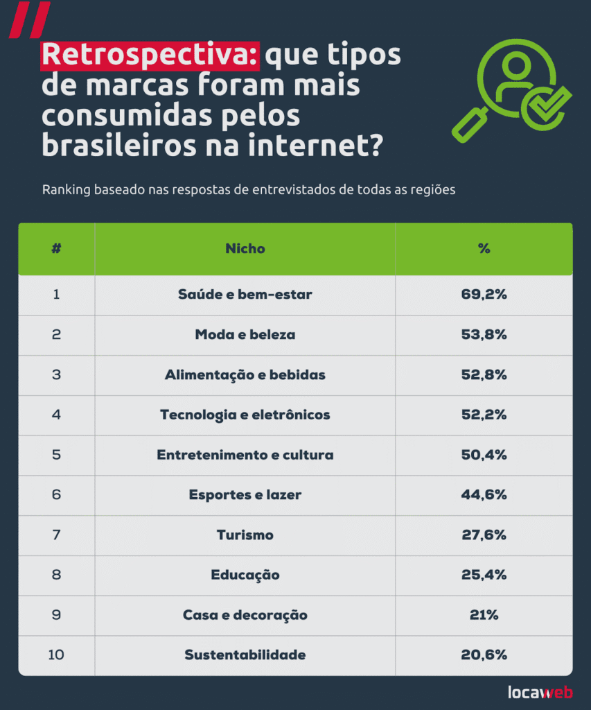 Essas interações se concentraram, sobretudo, em nichos de forte popularidade entre os consumidores em 2025. Em um momento de altas buscas por suplementos, produtos naturais e conteúdos de autocuidado, marcas do setor de saúde e bem-estar lideraram o interesse dos internautas (69,2%), à frente de segmentos como moda e beleza (53,8%), alimentação e bebidas (52,8%) e, ainda, tecnologia e eletrônicos (52,2%).