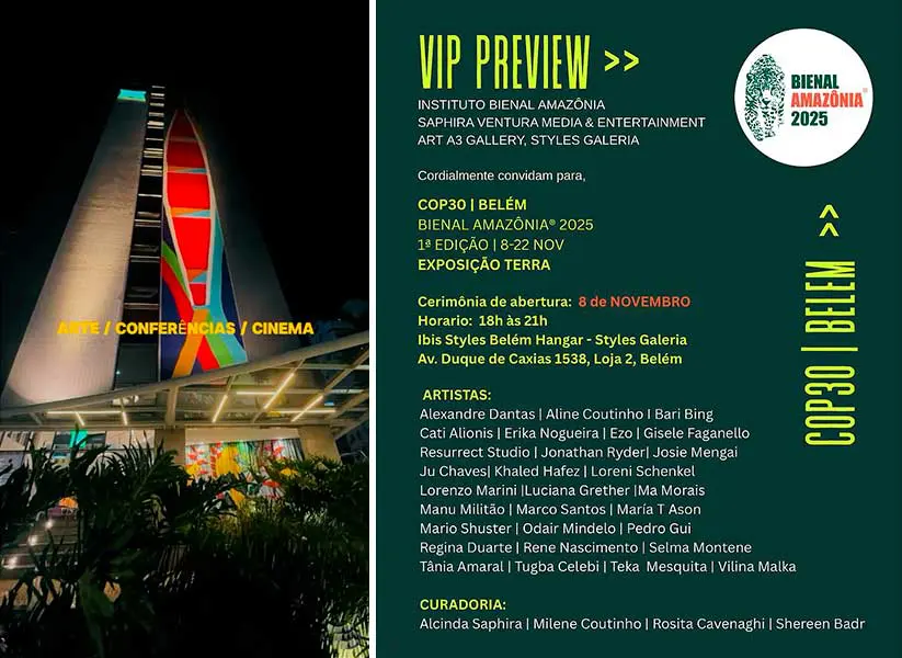Mais do que uma exposição, a Bienal Amazônia® é um chamado: um espaço de trocas, descobertas e conexões entre artistas, público e o futuro do planeta. Uma celebração da arte como potência transformadora — e da Amazônia como patrimônio vivo da humanidade.