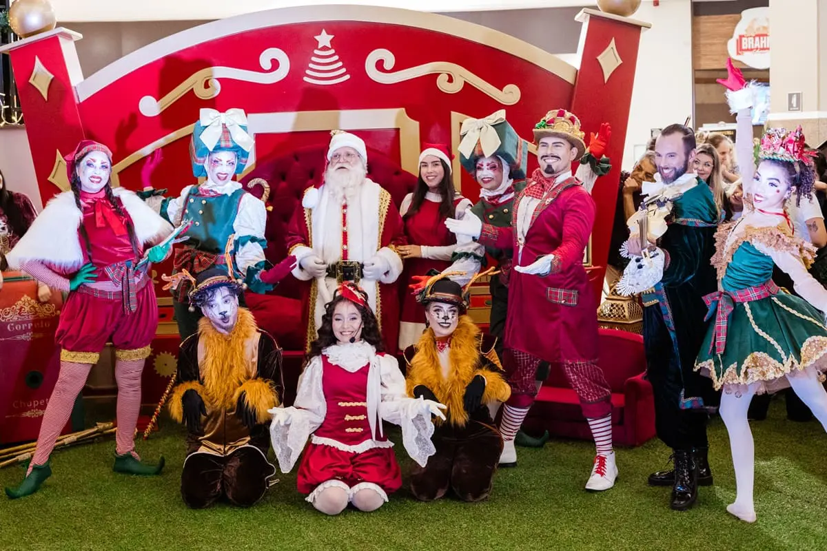 Inspirado na beleza e no simbolismo das luzes, o shopping ganha uma ambientação repleta de detalhes luminosos, com borboletas iluminadas, adornos clássicos em dourado e vermelho e elementos que convidam o público a viver momentos de encantamento. A decoração transforma cada espaço em um cenário mágico, com jogos interativos e áreas para fotos, onde o espírito natalino se manifesta em cada brilho e cor.