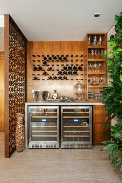 Projetos de adegas são queridos ainda mais nessa época de fim de ano. Então não deixe faltar drinks e garrafas para a comemoração | Projeto Dantas & Passos Arquitetura | Foto: Maura Mello