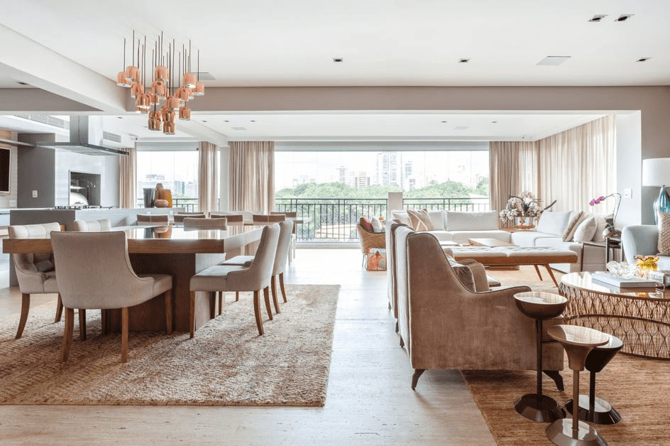 Salas e livings são o primeiro acolhimento das ceias, onde se recepciona os convidados, e em vista disso, esses ambientes não podem ser sobrecarregados. O décor precisa ser bonito e pontual, mas sem atrapalhar a circulação.