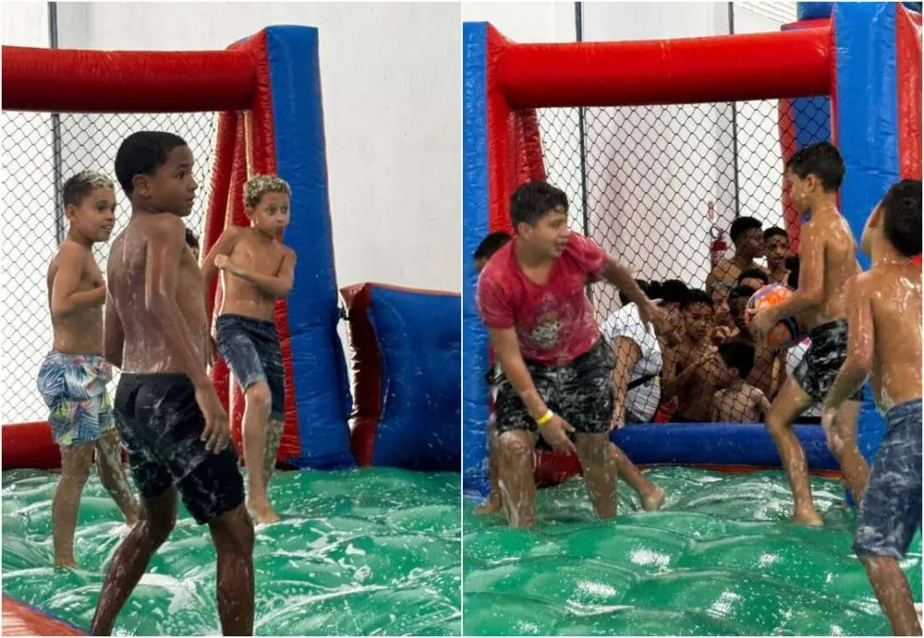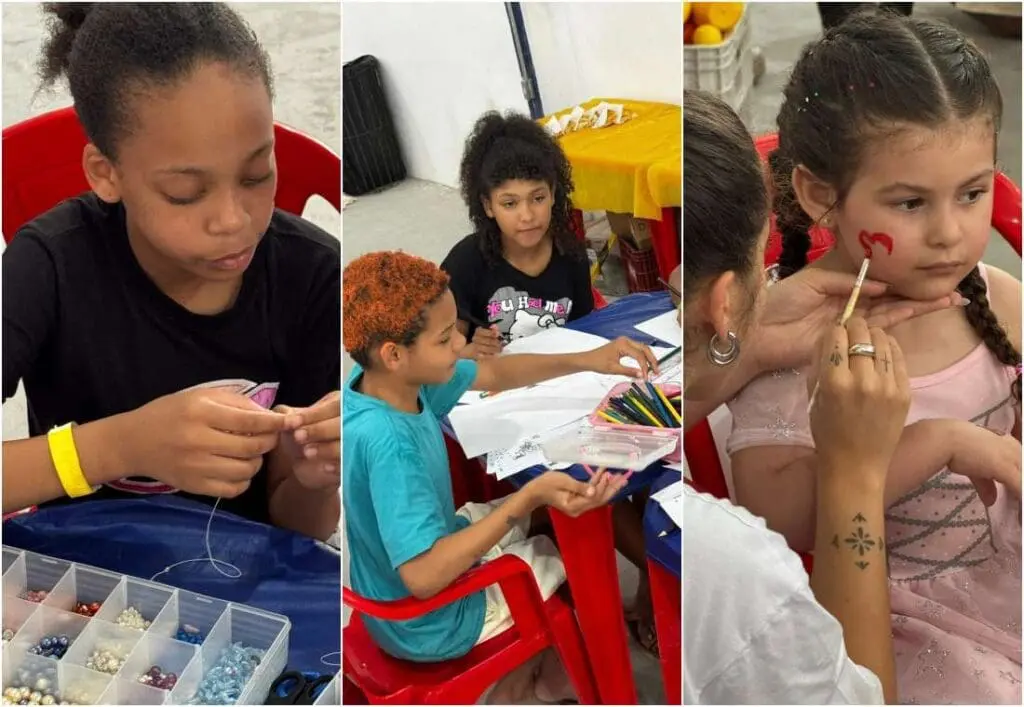 A programação contou com uma ampla estrutura de lazer totalmente gratuita, incluindo brinquedos infláveis como futebol de sabão e tobogã gigante, além de diversas atividades recreativas e gincanas, entre elas corrida do saco, corrida maluca com balde de água, pula corda, amarelinha, futebol, bambolê e boliche. As crianças também participaram de oficinas de artesanato, com a confecção de pulseiras de miçangas, e se divertiram com pintura facial, cabelo maluco e outras atrações lúdicas.
