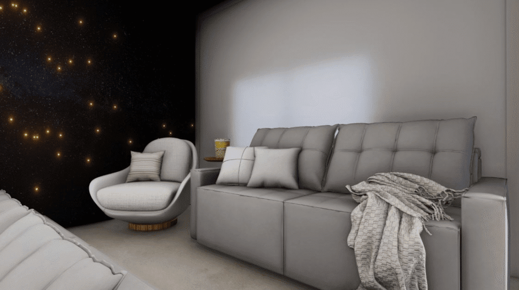 Inspirados nas poltronas de cinema, o sofá poltrona oferece assentos individuais, com braços delimitados e, muitas vezes, porta-copos ou mecanismos de reclino. São perfeitos para quem gosta de transformar a sala de TV em uma verdadeira experiência de entretenimento.