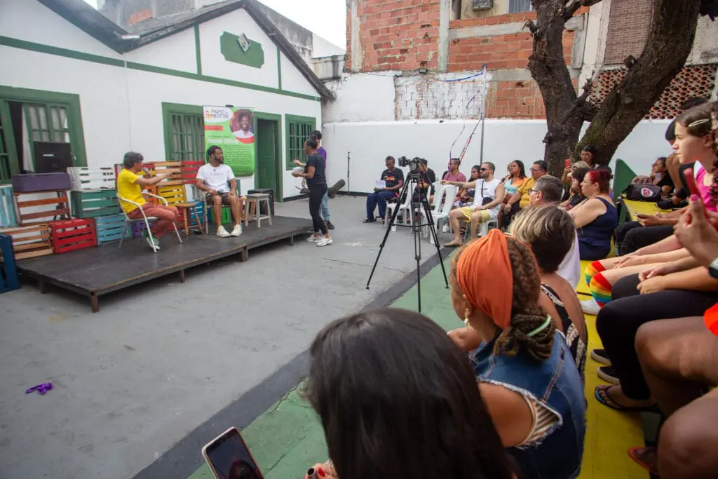 Uma conversa direta sobre sonhos, oportunidades, determinação e o poder transformador da arte. Assim foi o encontro Papo de Mestre com René Silva, realizado no Projeto No Palco da Vida, em Olaria, Zona Norte do Rio, no fim da semana. O fundador do jornal Voz das Comunidades falou um pouco sobre sua trajetória e ouviu histórias inspiradoras dos alunos no instituto, no evento comandado pelo ator e diretor Wal Schneider