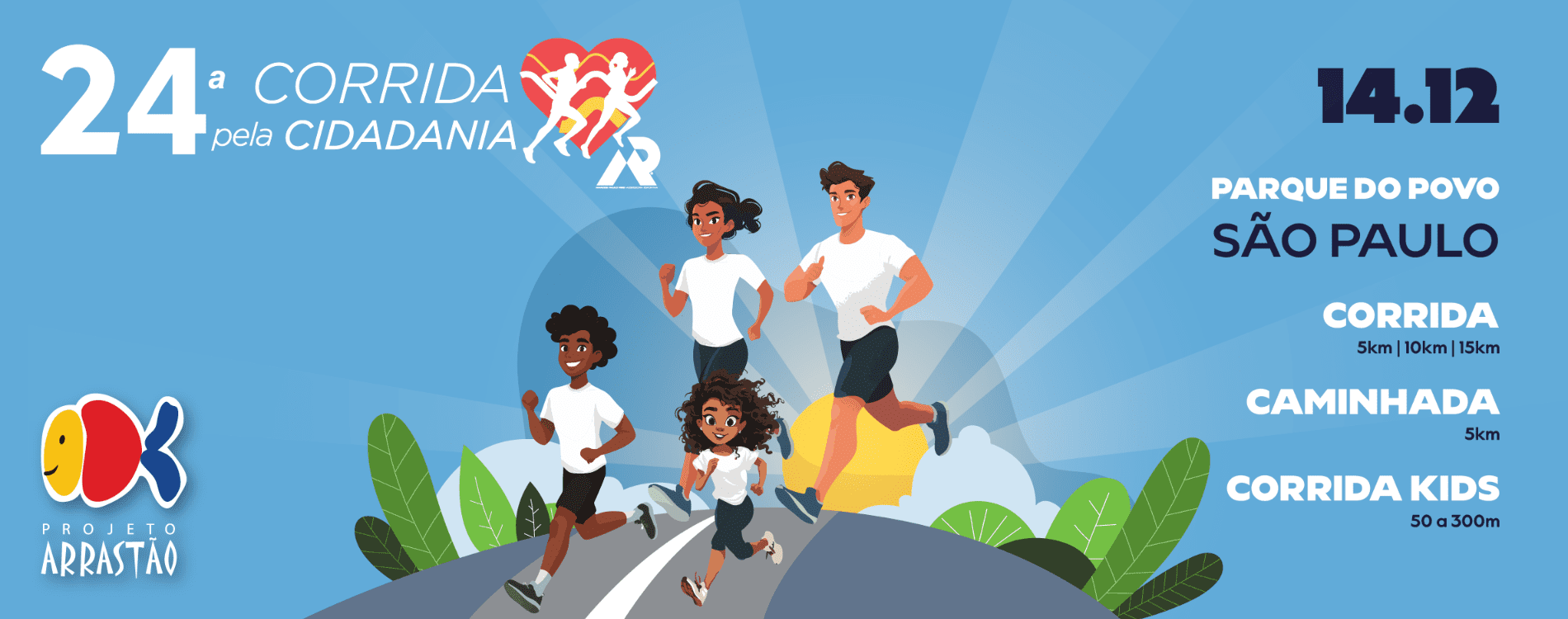 No dia 14 de dezembro, o Parque do Povo, em São Paulo (ao lado do Shopping JK Iguatemi), será o ponto de encontro para a 24ª Corrida pela Cidadania, tradicional evento esportivo e solidário realizado pelo Projeto Arrastão, que há mais de duas décadas promove ações voltadas ao desenvolvimento de crianças, jovens e famílias em situação de vulnerabilidade social.